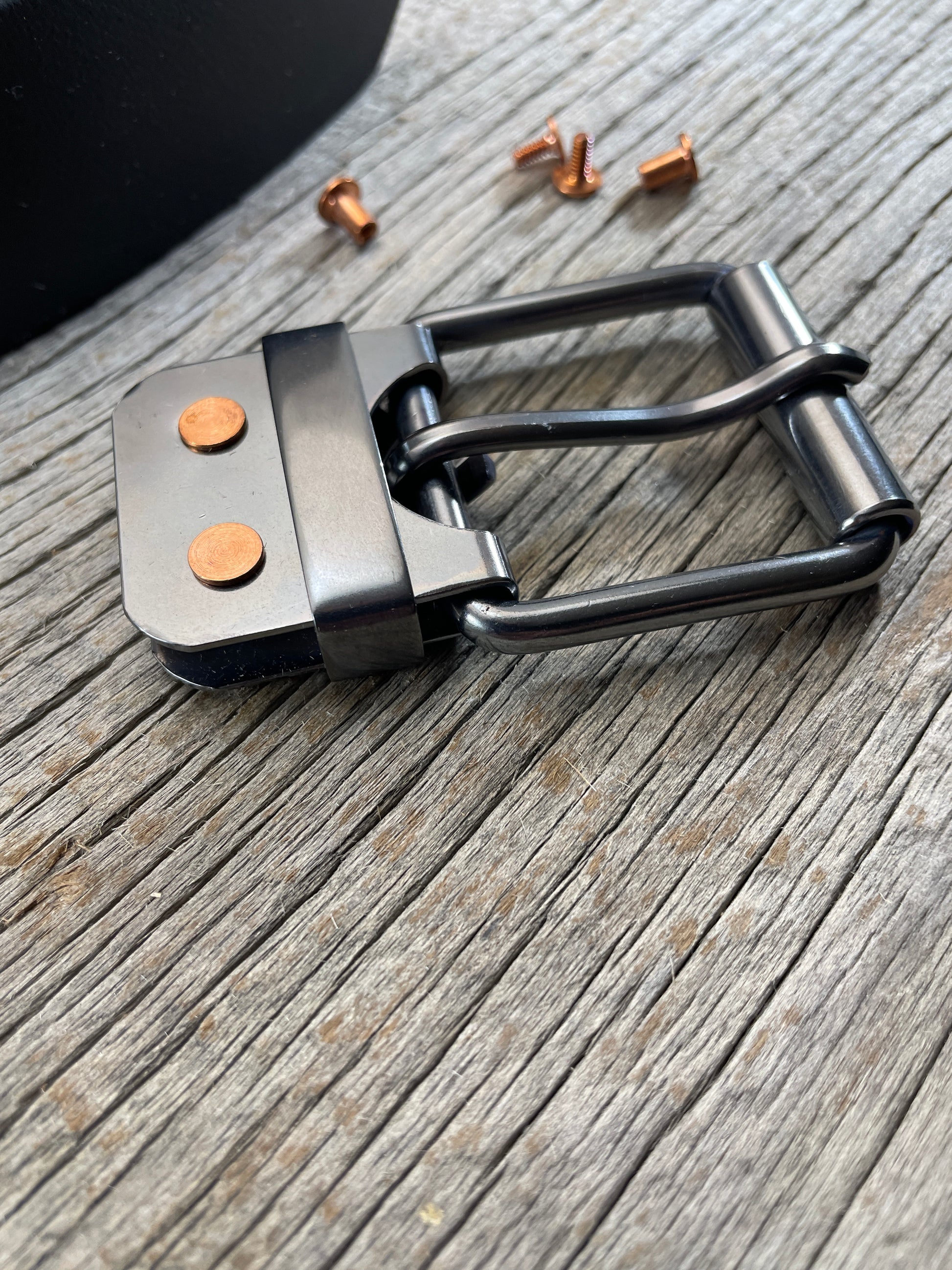 CB-02)1 - Gunmetal Copper Belt-Plate Buckle - Our Solid Copper Belt-Plate Buckle includes the Copper Buckle, Copper Keeper and Copper Belt-Plate with Chicago Screw hardware.