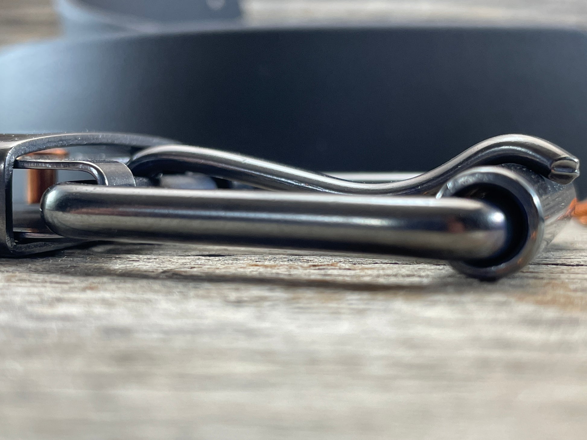 The roller buckle mounts to a belt-plate with a keeper inserted on the belt plate, fastened with Chicago screws. No stitching. No failure points. The result is a lower profile with increased comfort and flexibility. Its hinge function allows the buckle to move with the body, making it a very comfortable belt and buckle combination.