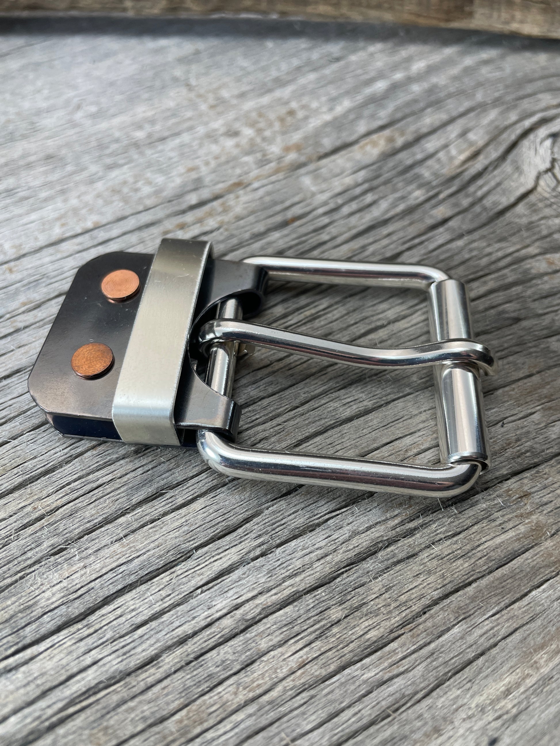 (SB-05)1 - Sterling Silver Belt Buckle and Gunmetal Copper Belt-Plate Buckle with Sterling Silver Keeper Loop
