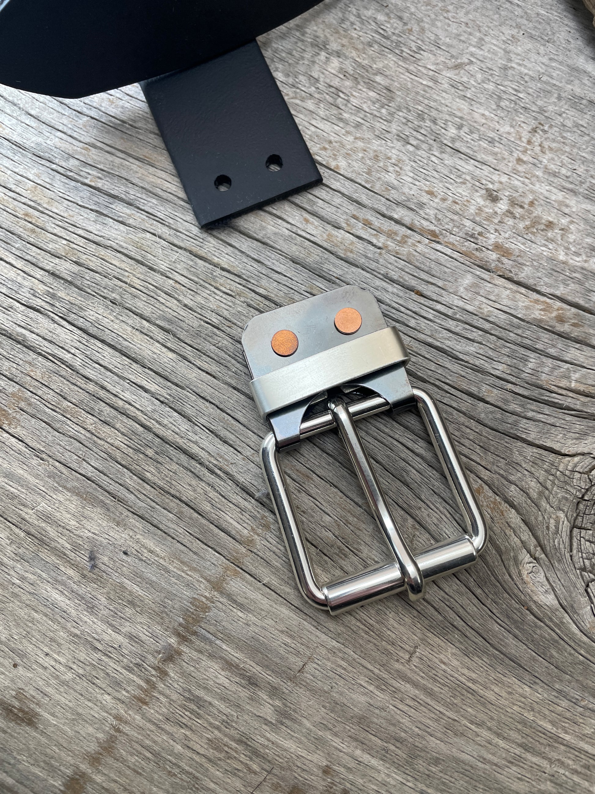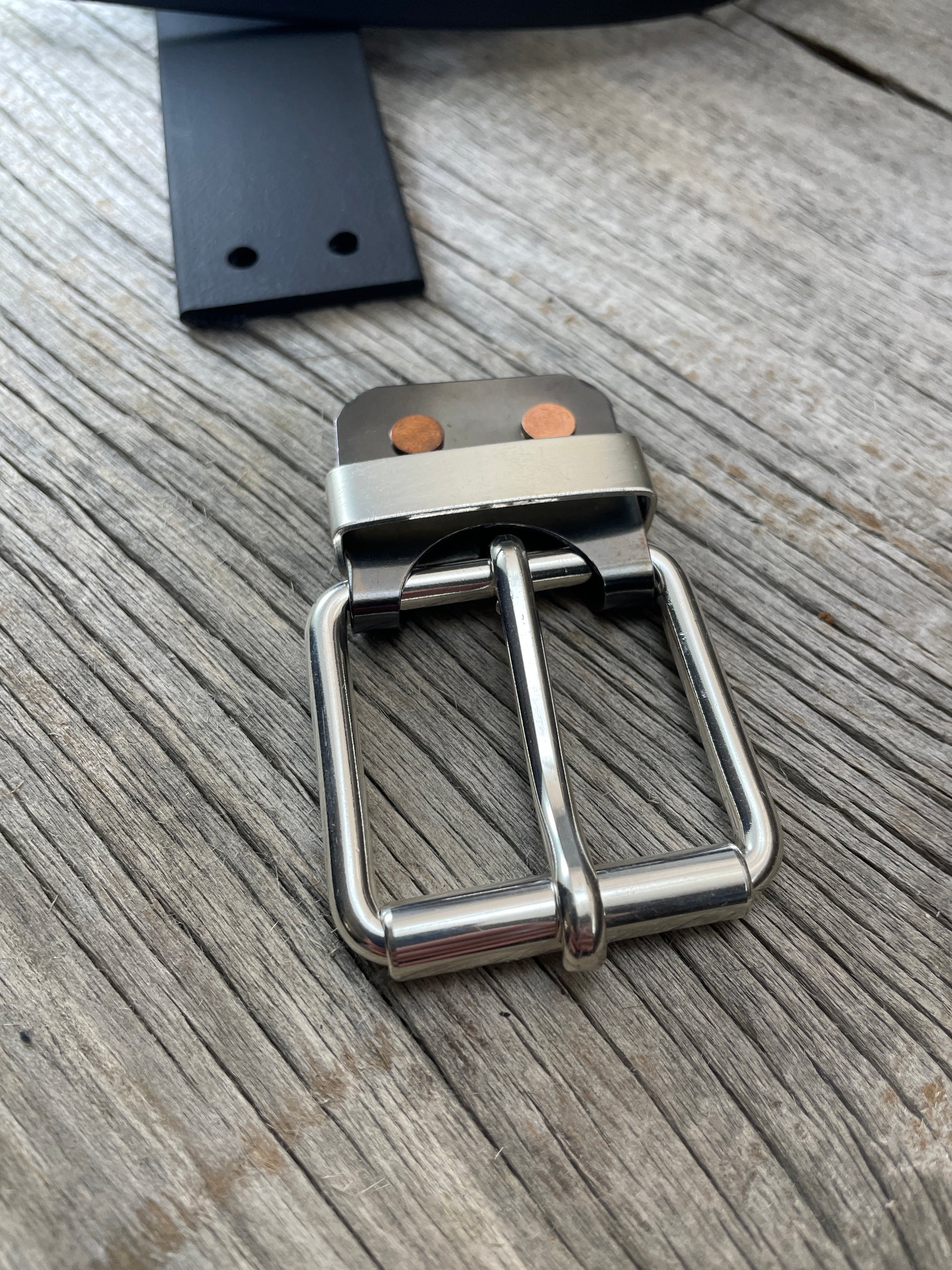 This buckle is designed to fit leather from 5 oz to 15 oz in thickness,. US Made Chicago screws make it easy to swap belts as needed.